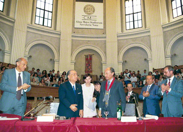 皆さん方と七百年の歳月を隔てた青年ペトラルカは、私が講演したボローニャ大学で勉学に励みました。ペスト(黒死病)という恐ろしい感染症が蔓延する危機の時代を生き抜いて、ルネサンスという文化の黄金時代を切り開いていったのです。