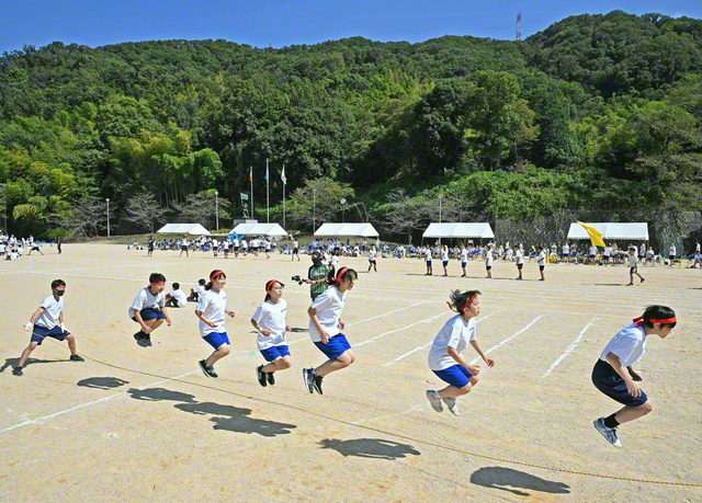 関西創価小学校も同日、「輝け 勝利の栄冠! 自分に負けず いざ前進!」とテーマを掲げ、大会を行った。