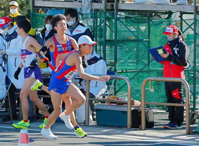 16・3キロ付近で2位に順位を上げると、先頭との差を34秒に縮める快走で、4区の嶋津雄大選手(3年)にタスキをつないだ。