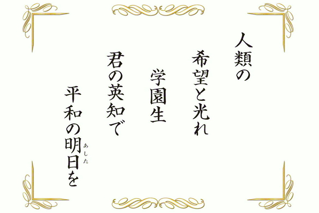 「わが学園生は一人ももれなく、ダイヤモンドのように、最も強く最も美しく光る生命を持っています。その自分自身の限りない『力』と『使命』を揺るぎなく信じていただきたい」