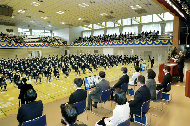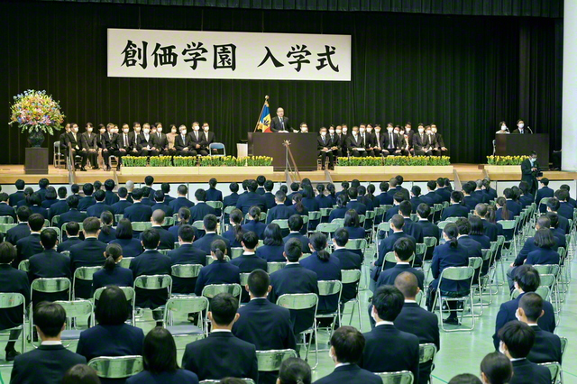 創価中学校(東京・小平市)では、江間校長があいさつ。3年生の丹羽勇翔さん、川島めぐみさんが「歓迎の言葉」を贈り、新入生の野間秀一さんが「誓いの言葉」を述べた。