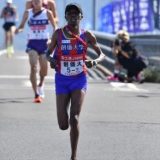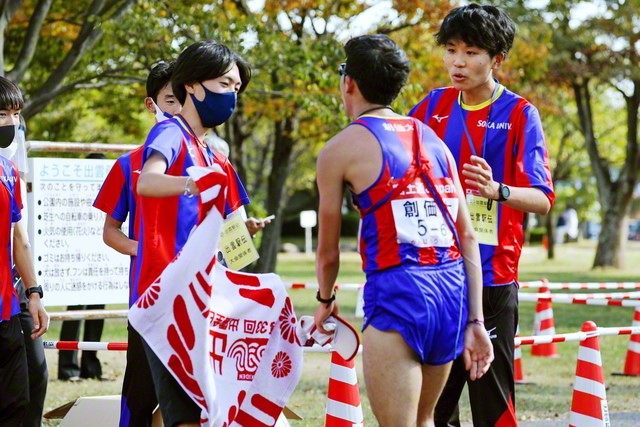 2年分の思いをもって臨んだ大会では、1区・緒方貴典選手(3年)が11位で力走。続く2区・新家裕太郎選手(同)は順位を一つ上げ、ムルワ選手にタスキをつないだ。