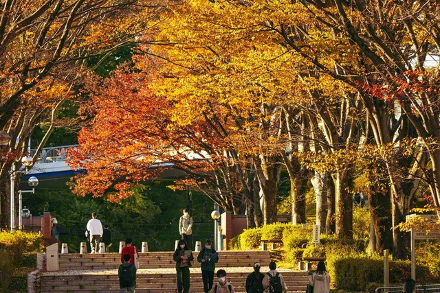 彩りの秋。コロナ禍の中、オンラインも駆使して学問に励んできた友を、色づく木々が優しく見守る