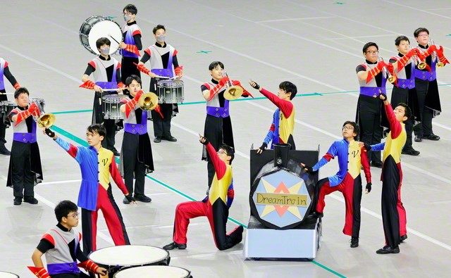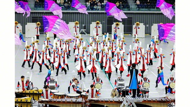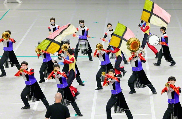 創価大学のプライド・オブ・ソウカ(藤滝大地部長)は、「心動」をテーマに躍動感あふれる演奏・演技を披露し、シニアドラムコー部門で5位と健闘した。
