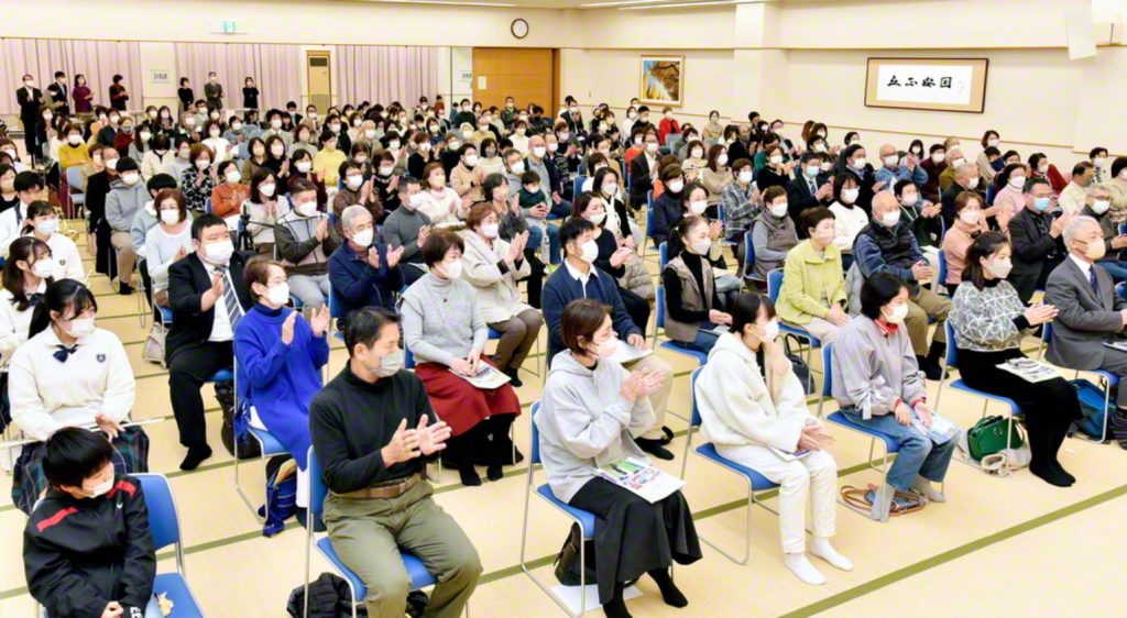 神田総県長、板倉同書記長のあいさつの後、創友会30期の新谷聖子さん、13期の村上雅博さんが、在学中の原点を胸に、誓いの人生を歩む様子を報告。関西創価高校の有志が演奏を披露した。
