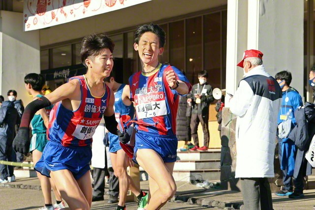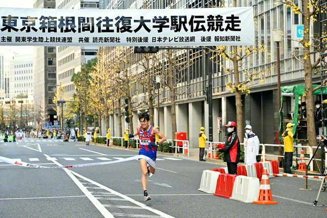 創価のアンカーは石丸惇那選手。1年生ながら今季の「大学三大駅伝」の全てで出走を勝ち取ったホープは、負けじ魂を燃やしてゴールを目指し、総合8位で大手町のフィニッシュテープを切った。