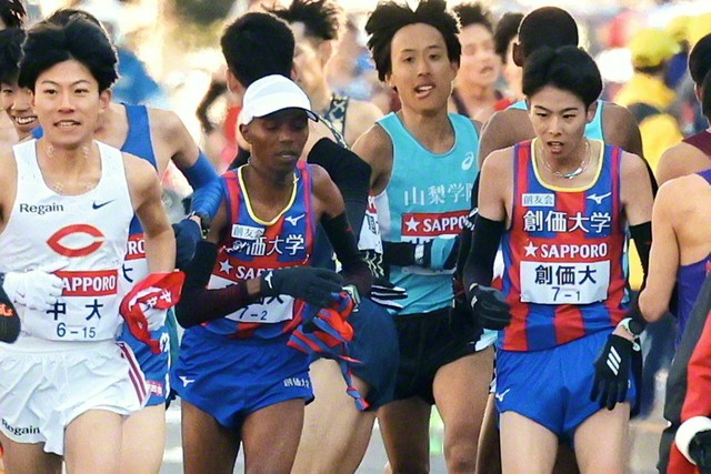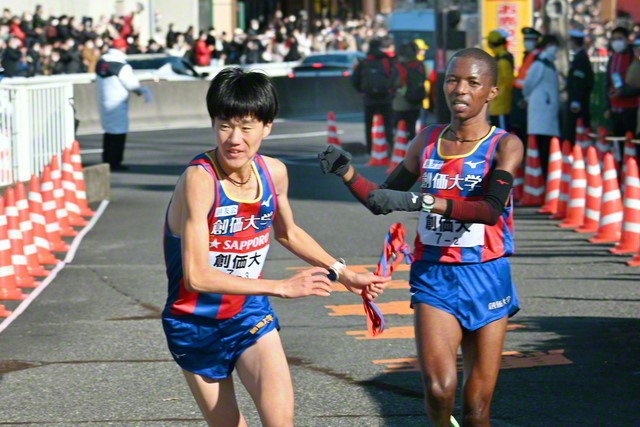 ムルワ選手は10キロ過ぎで3位を走る明治大学をとらえると、青山学院大学など上位チームと併走。戸塚中継所まで山梨学院大学の留学生と競り合い、5位をキープした。