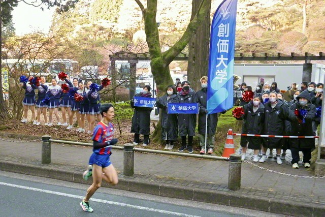多くの観衆の拍手と応援団のエールを背に受け、創大の1区は横山魁哉選手(4年)が出走した。