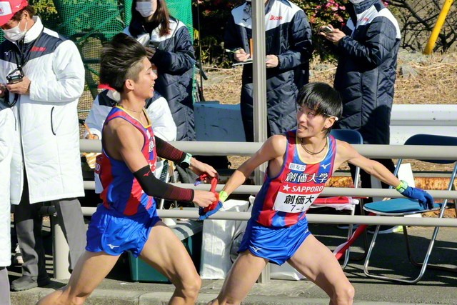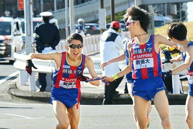沿道の応援、切磋琢磨してきた仲間たちの思いを力に変え、“魂の走り”を見せる。残り5キロ以降、右足に痛みを感じながらも7位で小田原中継所に駆け込み、5区の野沢悠真選手(1年)にタスキを手渡した。