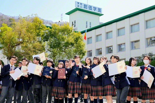 関西創価高校(大阪・交野市)の卒業式では、広瀬勝利さん、直里美紀さんに創立者賞が贈られ、大月校長が平和のバトンを未来へつなごうと述べた。関西創価中学校(同)では、古賀校長が報恩感謝の心で幸福の花を咲かせようと門出を祝った。代表に創立者栄冠賞が授与された。